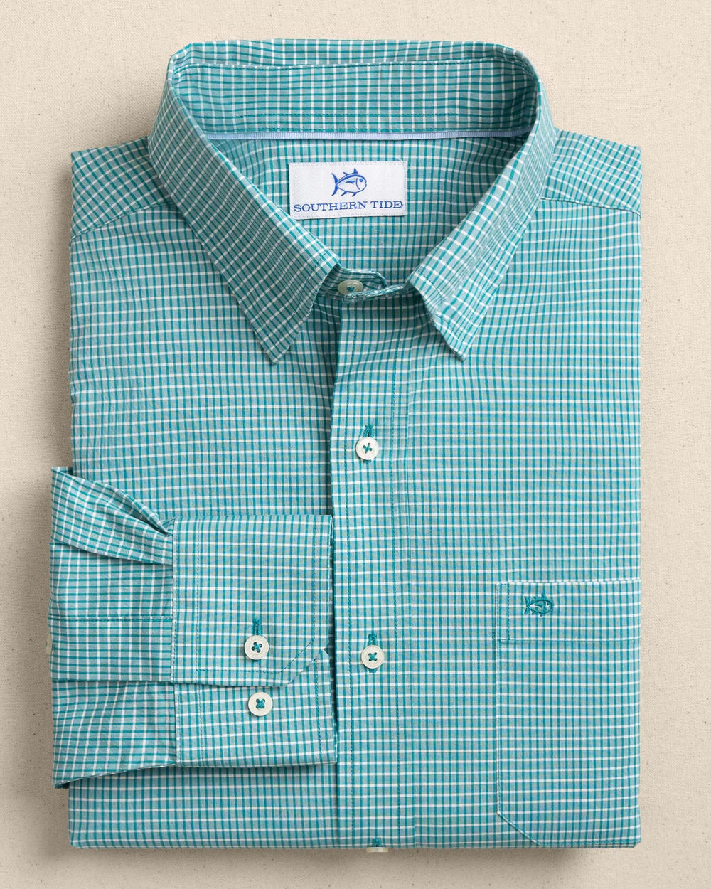 The Charleston Crofton Plaid Sportshirt combines heritage styling with advanced temperature regulation. At 56% cotton, it provides classic comfort and breathability, while 39% cooling polyester actively manages moisture and heat dissipation—ideal for warm climates or active wear. The 5% spandex offers subtle stretch for unrestricted movement. Branded imitation mother-of-pearl buttons provide an understated luxury detail that complements the plaid pattern. This sportshirt excels in transitional settings, whether worn casually or layered, delivering both performance and timeless aesthetic appeal.