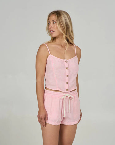 The Cloudbreak Cami delivers effortless elegance in premium 100% cotton gauze. This breathable fabric drapes beautifully while maintaining its shape, making it ideal for layering or wearing solo. The lightweight construction ensures all-day comfort in warm weather, while the natural fiber allows your skin to breathe. Perfect for beach days, casual outings, or relaxed evenings, this versatile cami transitions seamlessly from day to night.