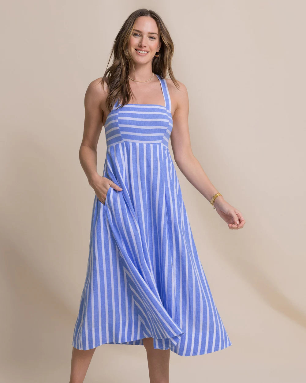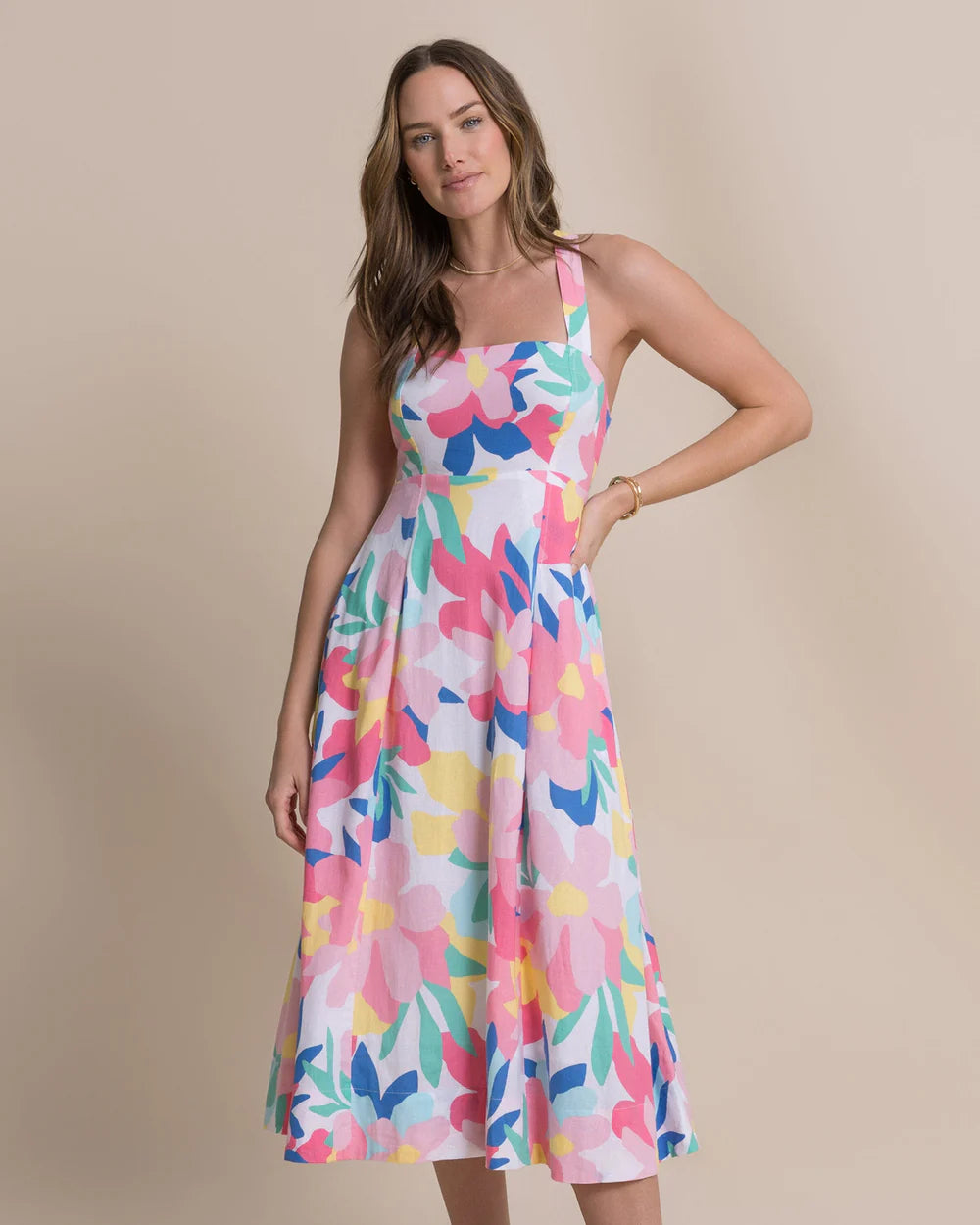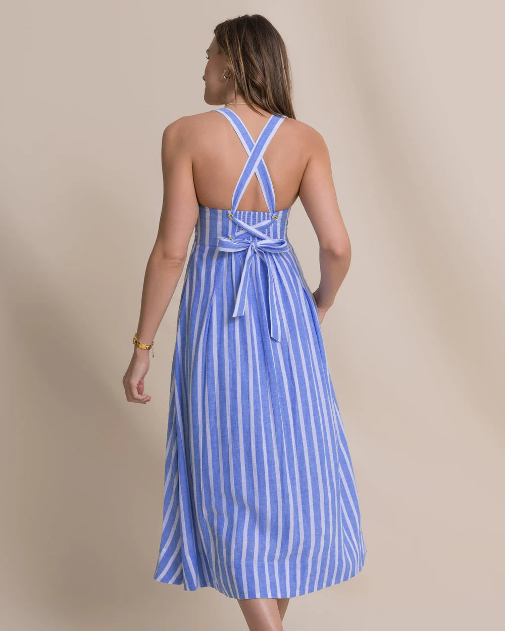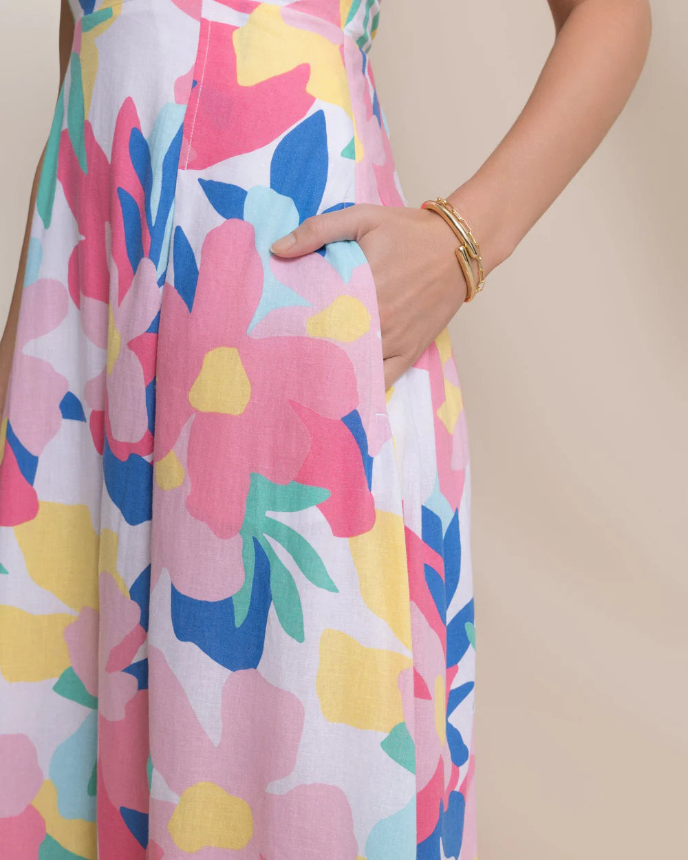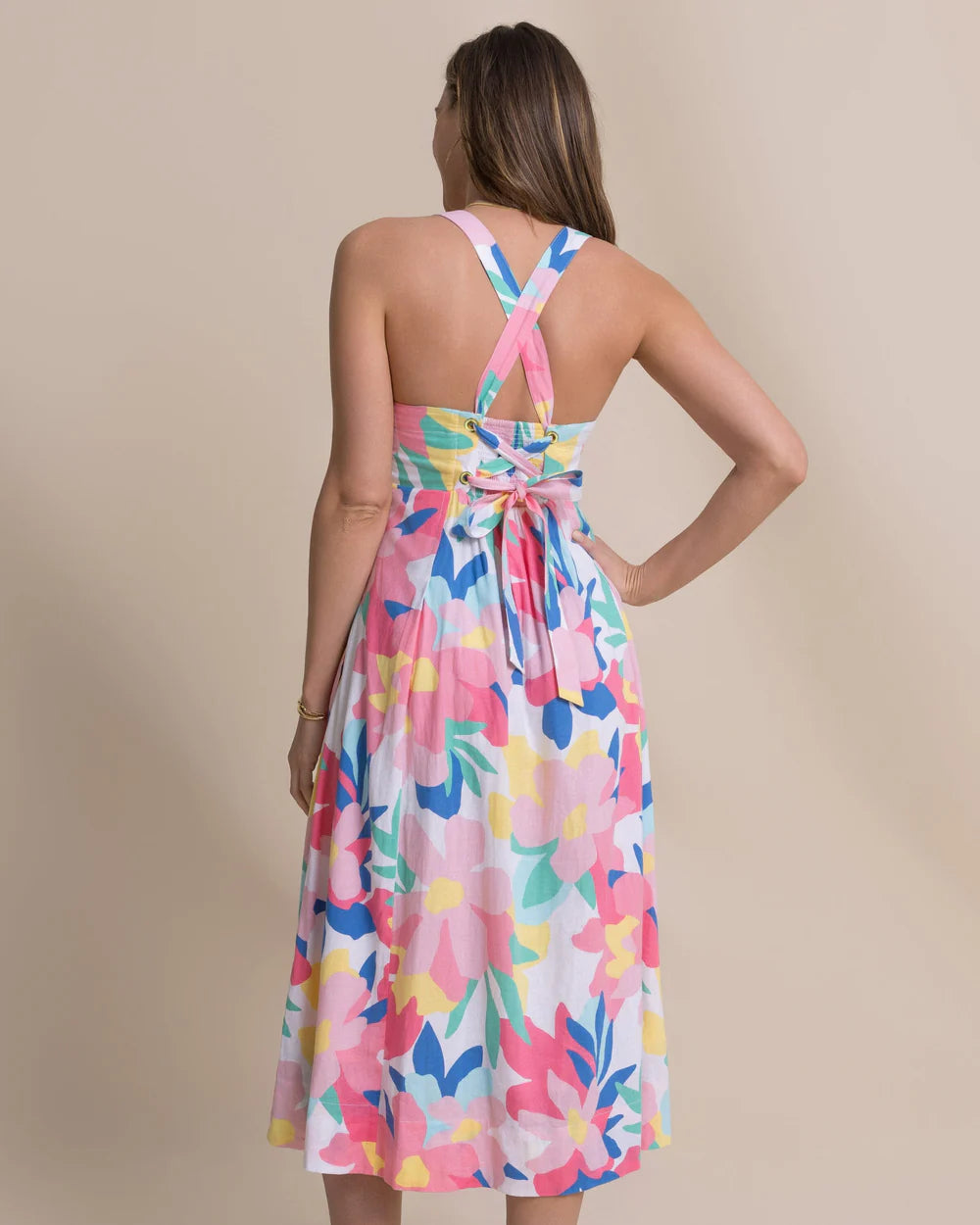 The Cinzia Printed Cross Strap Dress combines vibrant, eye-catching prints with effortless summer style. This lightweight midi dress features a sleeveless design and adjustable tie-back closure for a flattering, comfortable fit. The breathable linen-viscose blend (52% Linen, 48% Viscose) keeps you cool through warm days, beach getaways, and evening plans. Perfect for transitioning from day to night with minimal effort.