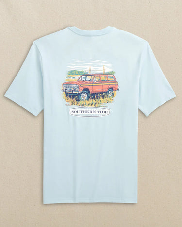 The Marsh Wagon T-Shirt, in Clear Day Blue, captures the laid-back charm of backroad coastal cruising. Featuring a red wagon set against a marsh backdrop, it’s equal parts nostalgic and outdoorsy