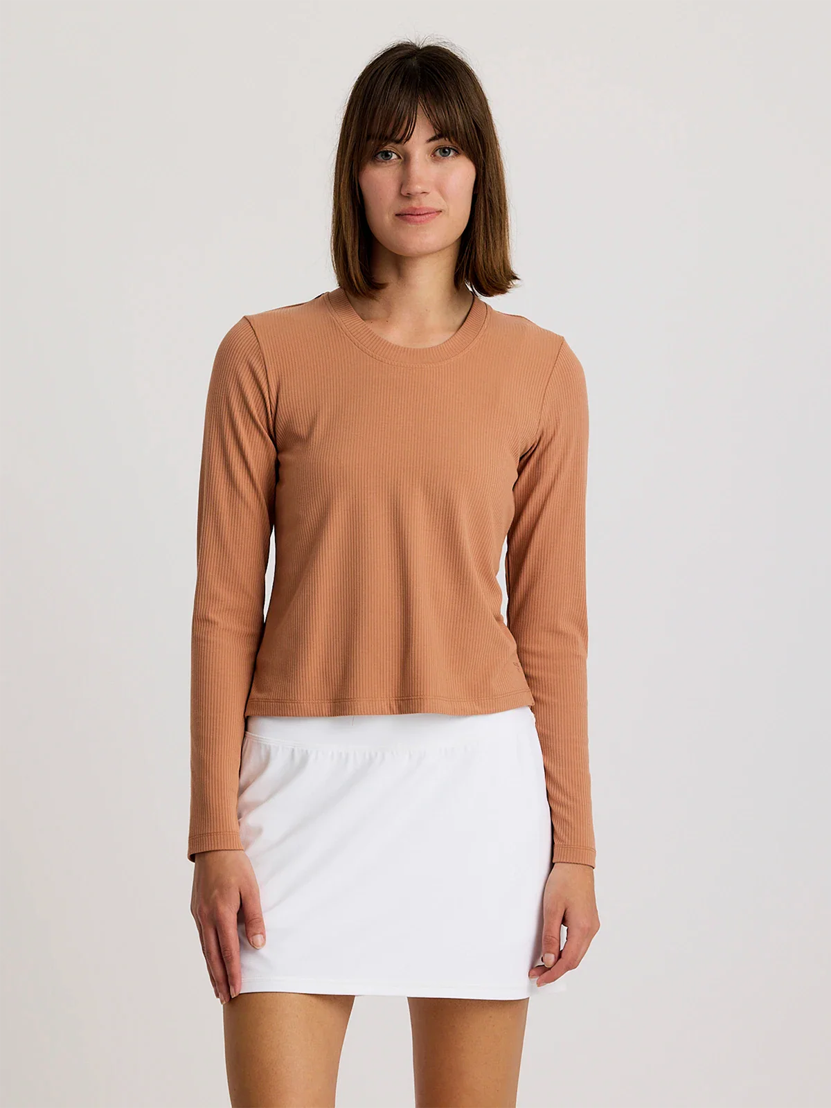 The Women's Ribbed Bamboo Long Sleeve features a sustainable blend of 45% recycled polyester, 45% viscose from bamboo, and 10% spandex, delivering exceptional comfort and flexibility. With UPF 50+ protection, it offers advanced defense against harmful UV rays, making it an ideal choice for prolonged sun exposure. The ribbed texture adds durability and a refined fit, combining eco-conscious materials with performance for everyday wear and outdoor activities.